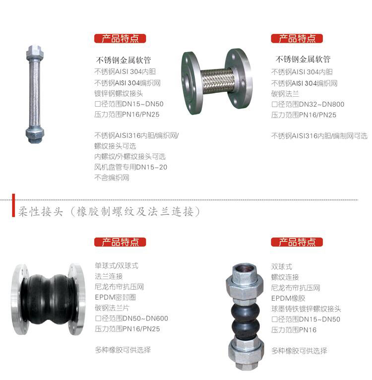 柔性接(jie)頭(不鏽(xiù)鋼制螺(luo)紋及法(fa)蘭連接(jiē))