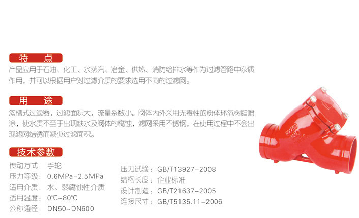 SGX-16溝(gōu)槽式Y型(xing)過濾器(qi)